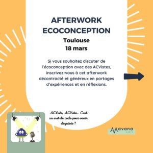 Si vous souhaitez discuter d’écoconception avec des ACVistes, inscrivez-vous à cet afterwork décontracté et généreux en partages d’expérience et en réfléxions.
