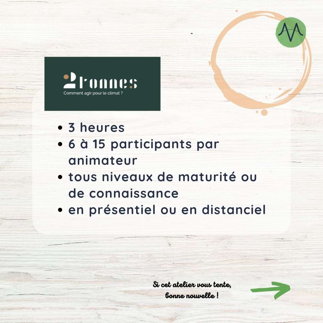 L’atelier 2tonnes pourra peut-être répondre à votre besoin. En groupe, pendant 3h, vous allez pouvoir faire des simulations afin d’arriver à une trajectoire de 2tonnes à l’horizon 2050.
