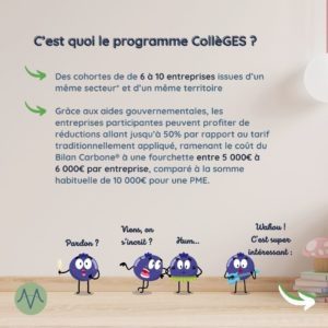 CollèGES est un programme unique en son genre, imaginé et déployé par Mavana, avec le soutien financier et opérationnel de l’ADEME, bpifrance et l’ABC. Si vous souhaitez bénéficier d’une formation et de la réalisation d’un Bilan carbone à prix réduit, nous vous invitons à continuer la lecture de cet article.