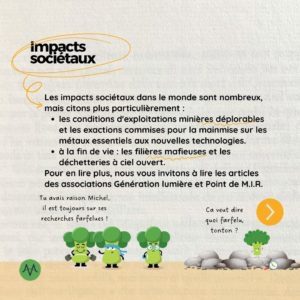 - les conditions d’exploitations minières déplorables et les exactions commises pour la mainmise sur les métaux essentiels aux nouvelles technologies.