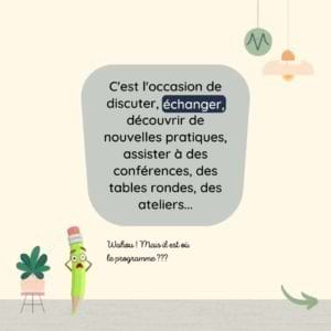 C’est l’occasion de discuter, échanger, découvrir de nouvelles pratiques, assister à des conférences, des tables rondes, des ateliers…