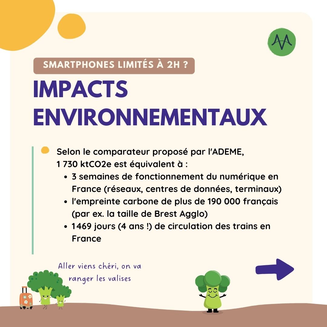 Si tous les Français entre 15 et 69 ans équipés d’un smartphone, réduisait de 2h par jour leur usage, cela représenterait 1 730 ktCO2e par an.*